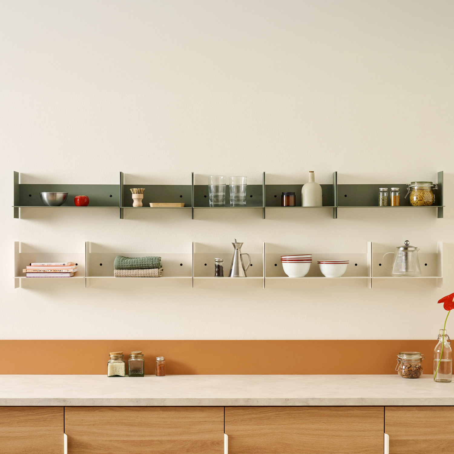 Das aus einem gebogenen Stahlblech hergestellte PLI-Regal ist in drei Größen – 30, 45 und 60 cm – erhältlich, um allen Bedürfnissen gerecht zu werden.