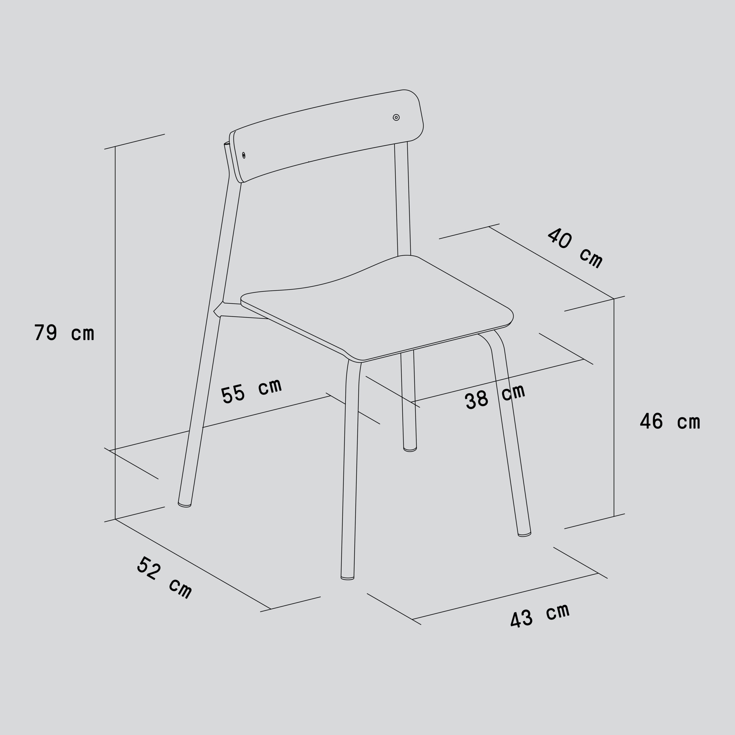 The robust and elegant powder-coated steel legs combine perfectly with the natural oak of the seat and the backrest. The soft curves contrast with the geometry of the structure, offering a perfect balance between aesthetics and ergonomics.