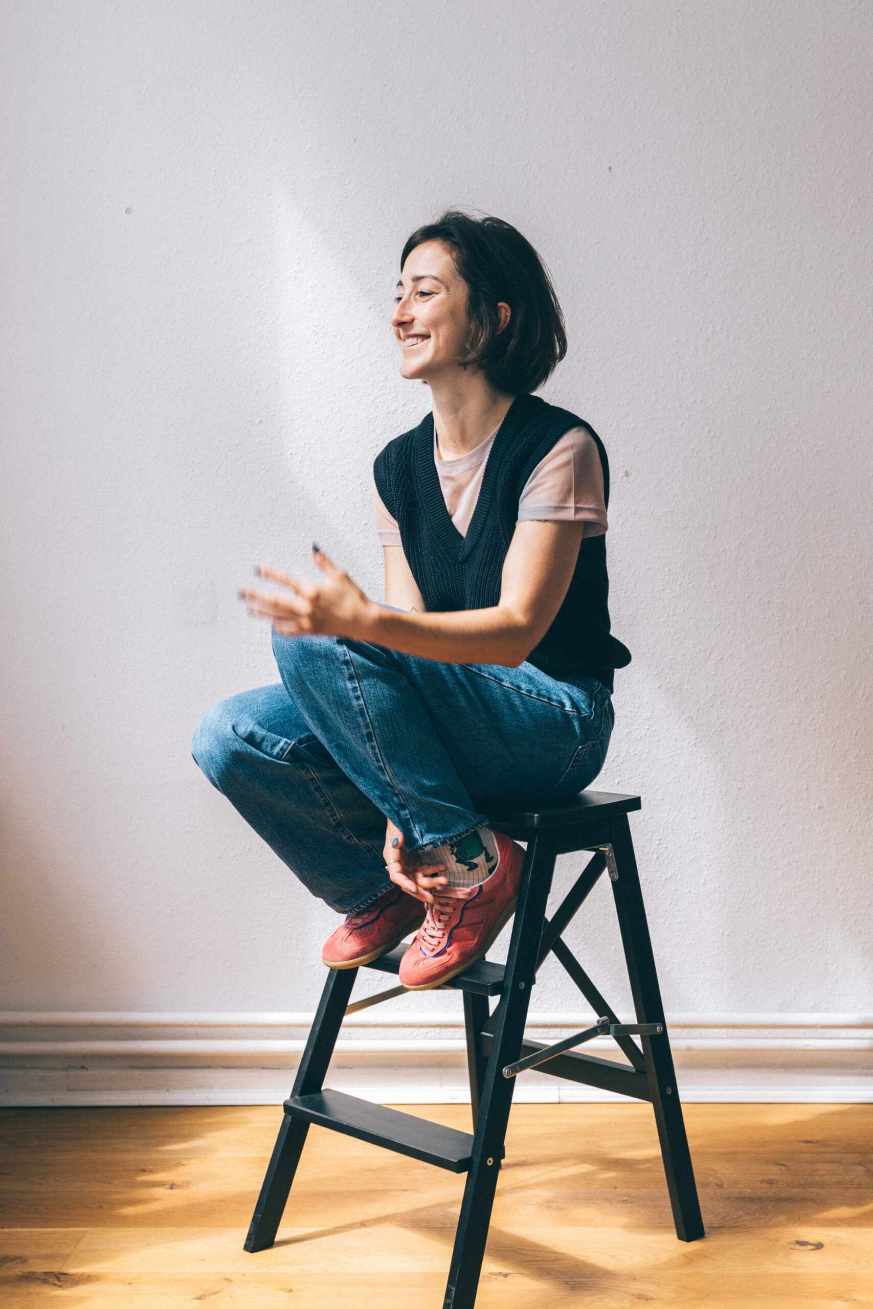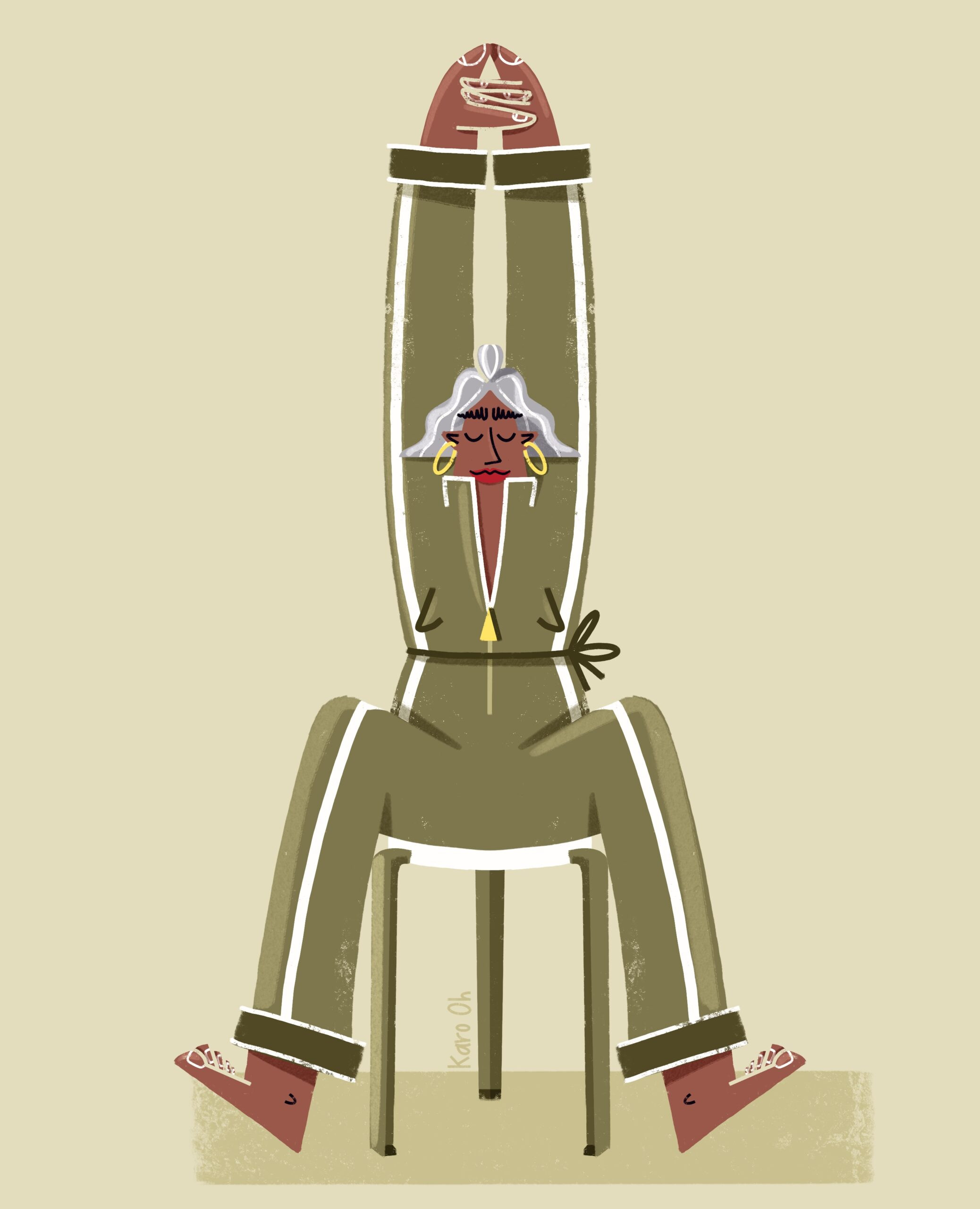 Je puise mon inspiration dans les asanas de yoga, que mes personnages tiennent avec aisance. Cela leur donne une allure confiante, presque comme des super-héroïnes, ce que sont, à mes yeux, la plupart des femmes. J’ai adoré l’idée de créer un pont entre le mouvement et les meubles immobiles de Tiptoe.